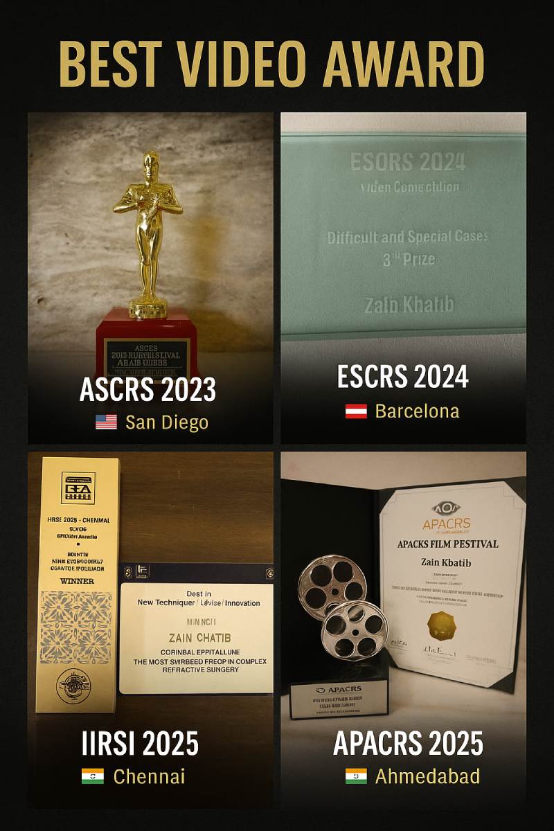Dr. Zain Khatib has won multiple international and national awards, consistently recognised on global stages for innovation and excellence in refractive surgery.
